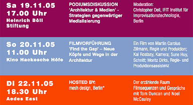 Dabei gehört www.plattfomnachwuchsarchitekten.de zu einer der dreizehn ausgewählten Gruppierungen, die im Film ihr aktuelles Projekt "Kreative Köpfe für den Palast der Republik" erstmals einer breiten Öffentlichkeit vorstellen.