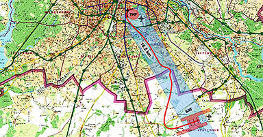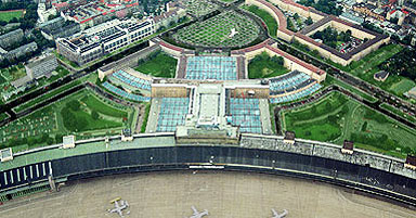 "Brunnert-Konzept": Luftbild/ Perspektive Flughafen Tempelhof als Check-In- und Ankunfts-Terminal für BBI.