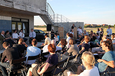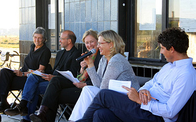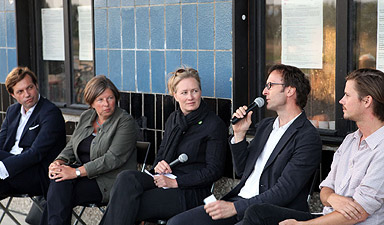 Reihe StadtWertSchätzen: Experimenteller Wohnungsbau, v.l.n.r. Bernd Hunger, Ingo Malter, Roland Borgwardt, Robert Huber, Gudrun Sack