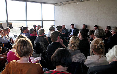 Reihe StadtWertSchätzen: Zwischennutzung und Wohnungsbau, v.l.n.r. Michael Schneidewind, Manfred Kühne, Alexander Walter, Frauke Hehl, Achim Nelke, Mario Hilgenfeld, Angelika Schöttler