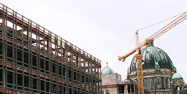 Wie man alle 60 Sekunden über die Webcam des Deutschen Historischen Museums (DAM) beobachten kann, schreitet der "selektive Rückbau" des Palastes im Schneckentempo voran - Stadt im Wandel in der Mitte Berlins durch die Echtzeitlupe www.dhm.de/zcam/
